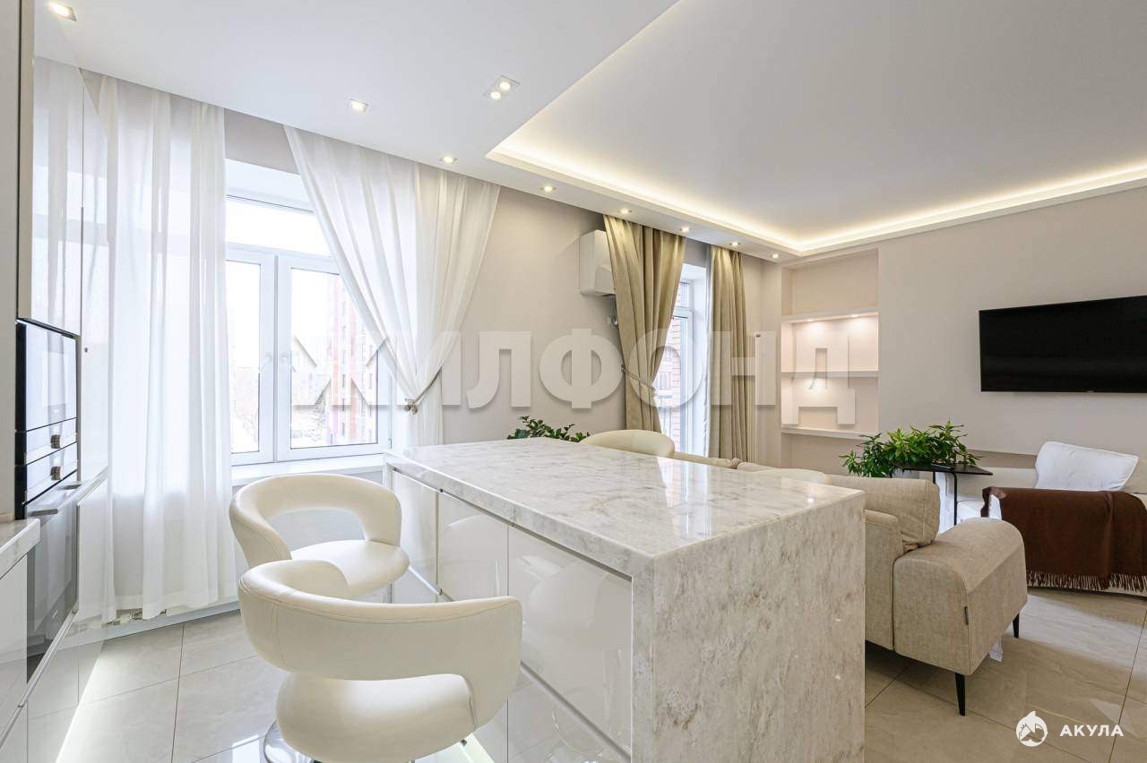 Трехкомнатная квартира в ПОЛНОЦЕННОМ КИРПИЧНОМ доме. ЦЕНТРАЛЬНЫЙ район, один из Лучших Жилых Комплексов города. Удобная планировка- на две стороны. Большие панорамные окна, высокие потолки- 3, 1. Состояние отличное. Ремонт делали по дизайн проекту с использованием дорогих и качественных материалов. Просторная гостиная- кухня- 31, 85 кв м. Встроенный гарнитур с бытовой техникой марки SIЕMЕNS- вытяжка, духовой шкаф, варочная поверхность, посудомоечная машина и холодильник. Каменная столешница и остров, удобные мягкие стулья. Две полноценные спальни, установлены системы фильтрации воздуха, кондиционер. В прихожей встроенный шкаф-купе, плательный шкаф в спальне. Два с. у , водонагревательный бак. Напольная плитка производства Испания, в комнатах инженерная доска натуральное дерево. Квартира полностью готова для проживания. Достойные соседи, красивая входная группа. Территория комплекса огорожена, видеонаблюдение. Детская площадка, в комплексе есть подземная парковка. Метро Покрышкина в шаговой доступности. Рядом с домом Продуктовые магазины, банки, Центральный рынок, ТЦ Галерея. ДОКУМЕНТЫ ГОТОВЫ, БЕЗ ОБРЕМЕНЕНИЙ.