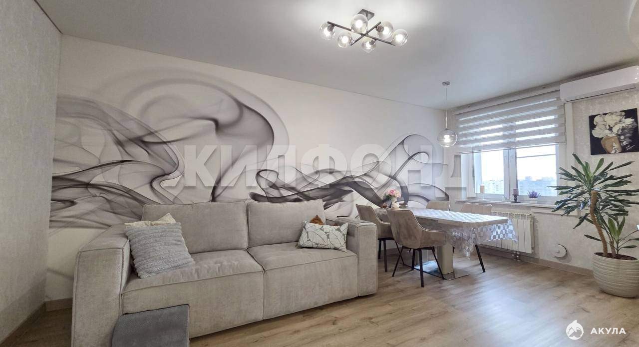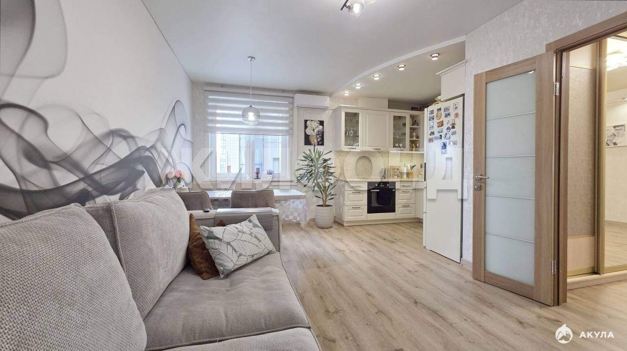 В продаже прекрасная 3х комнатная студия 74.3 кв.м. Отличная планировка квартиры: кухня-гостиная 22кв.м. , спальня 21 кв. м с отдельной гардеробной, детскя 12, 2 кв.м. Просторная лоджия с панорамным остеклением и видом на город. В квартире выполнен отличный ремонт с применением качественных материалов! Установлен кондиционер. Квартира продается с мебелью и техникой! Заходи и живи!