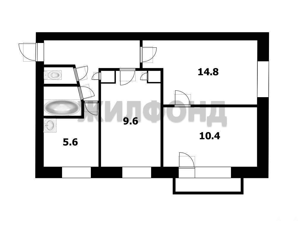 3 комн. квартира по ул. Филатова. Общей площадью: 51.80 кв.м.