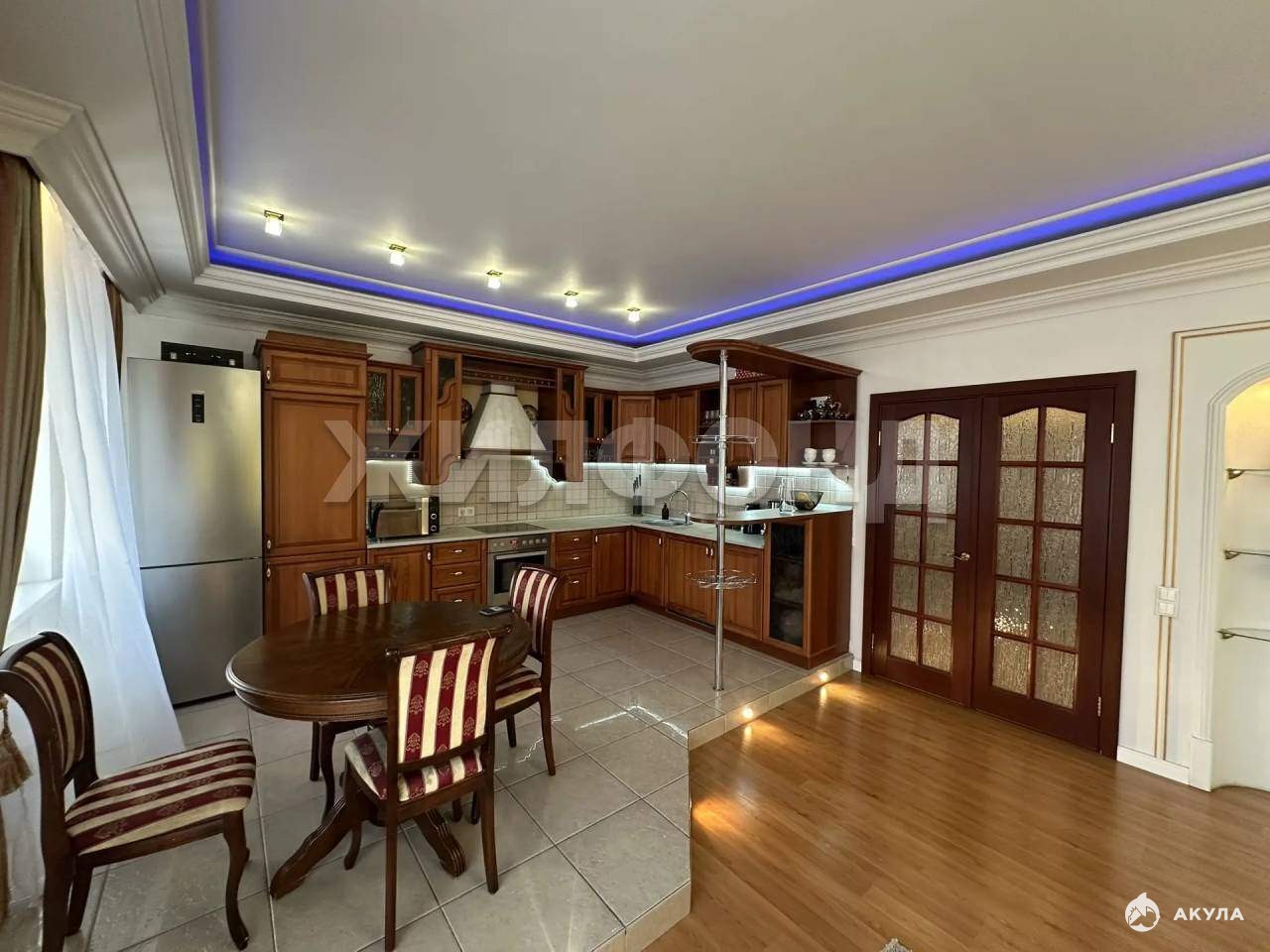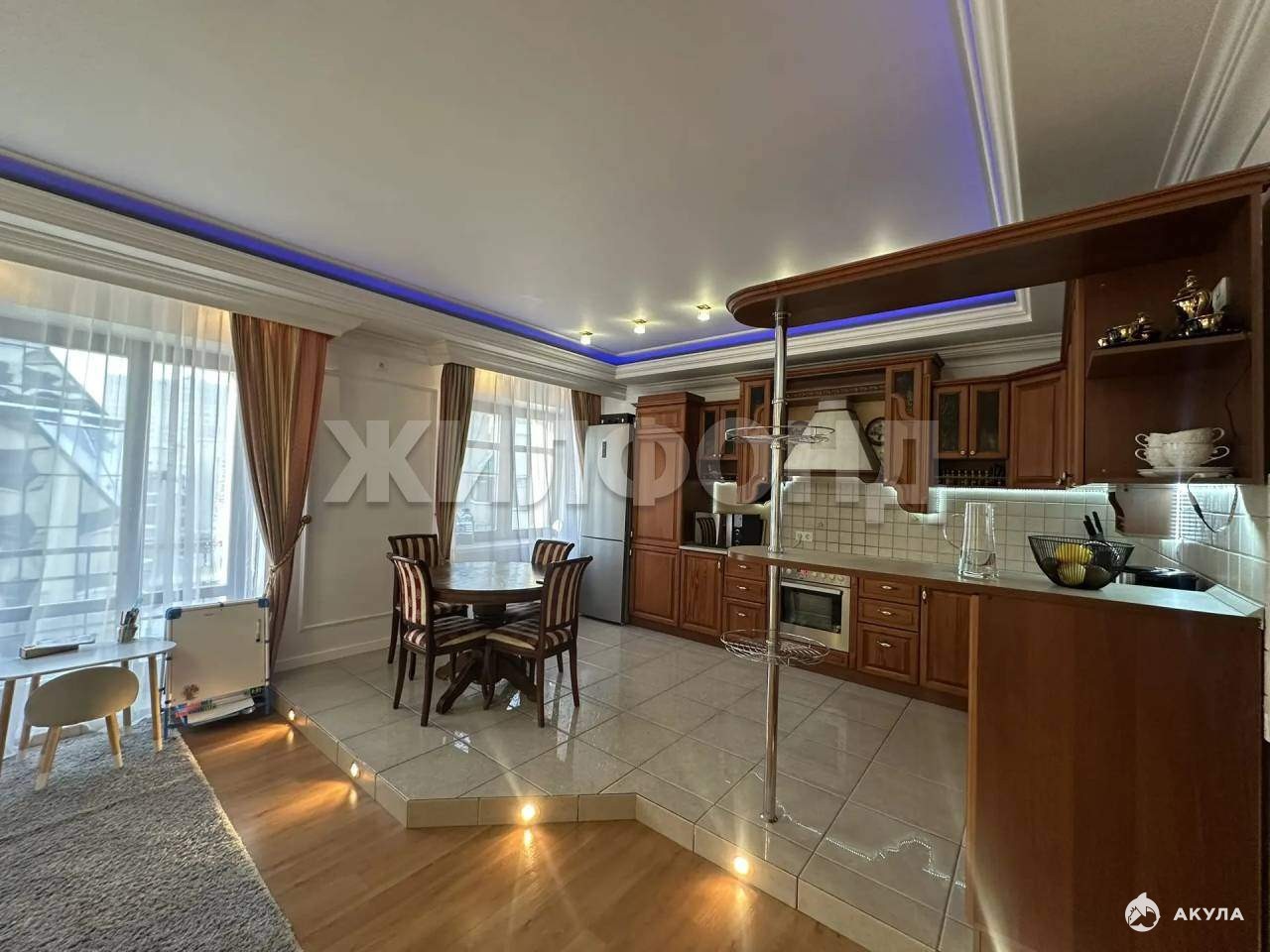 Выполнен современный и качественный ремонт в классическом стиле : потолки из гипсокартона, дизайнерское освещение, полы с подогревом, установлена дополнительная шумоизоляция, в комнатах обои под покраску, межкомнатные двери - натуральное дерево, со скрытыми замками. Обеденный стол, стулья и кухонный гарнитур из натурального дерева, посудомоечная машина Bоsсh, варочная панель и духовой шкаф Zаnussi. Сантехника французкой марки Jасоb Dеlаfоnе, в том числе биде, инсталяция , раковина. Вместительная джакузи с подсветкой. Ламинат высокого класса по всей квартире. Диван Mоbеl Zеit кожаный с электрическим управлением и выдвижным баром. Качественная резная мебель.