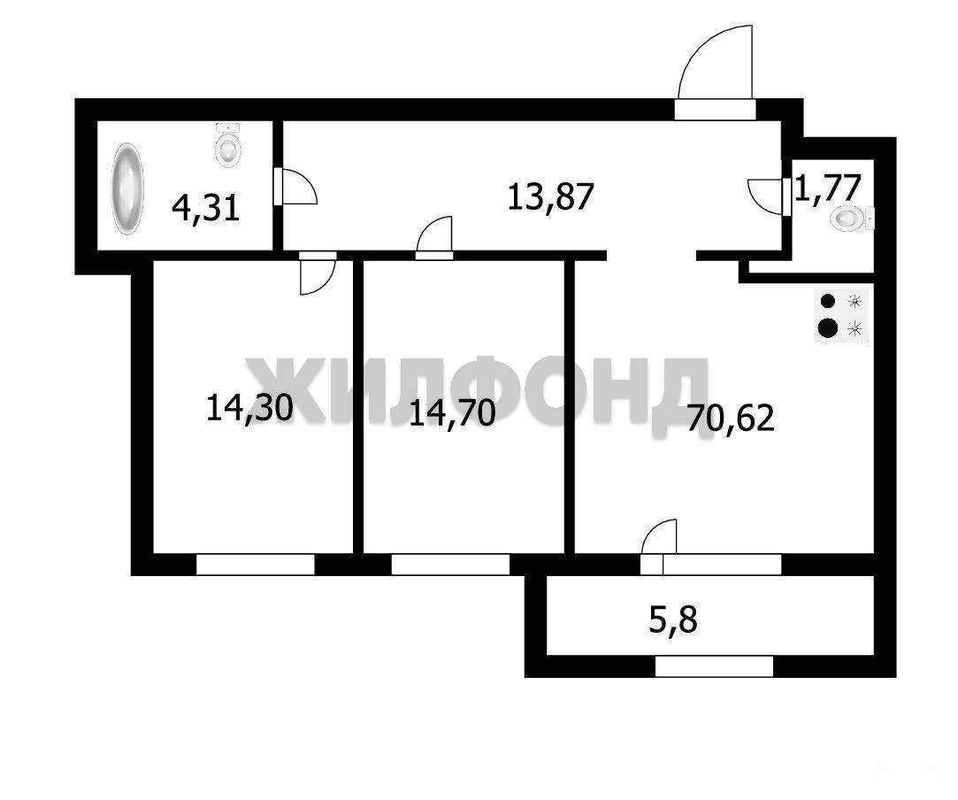 Площадь: 70.62 кв.м. (продуманная и эргономичная планировка) .