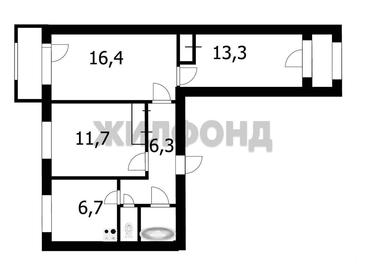 3 комн. квартира по ул. Кропоткина. Общей площадью: 58.90 кв.м.