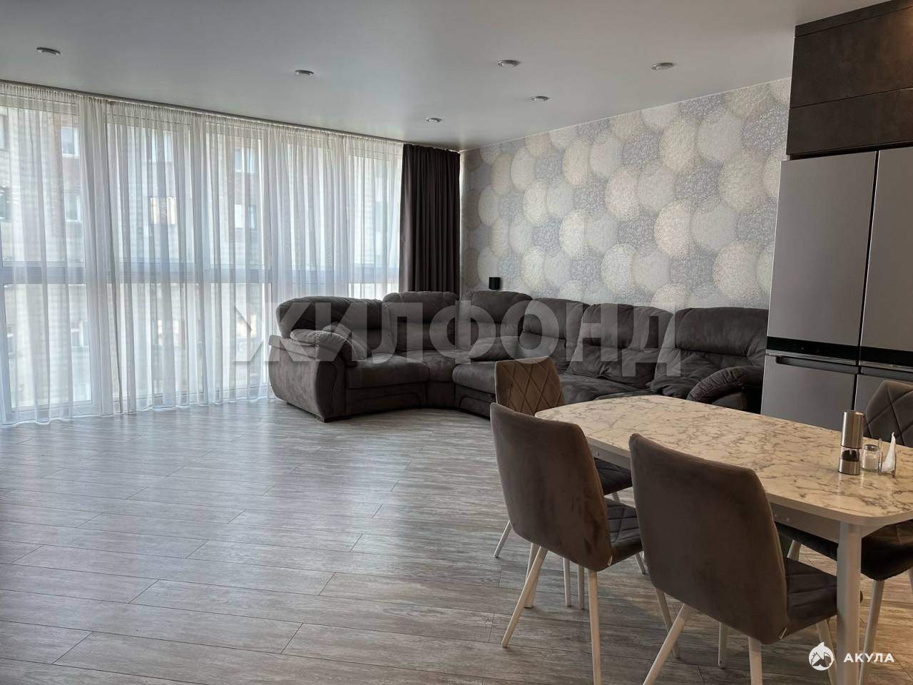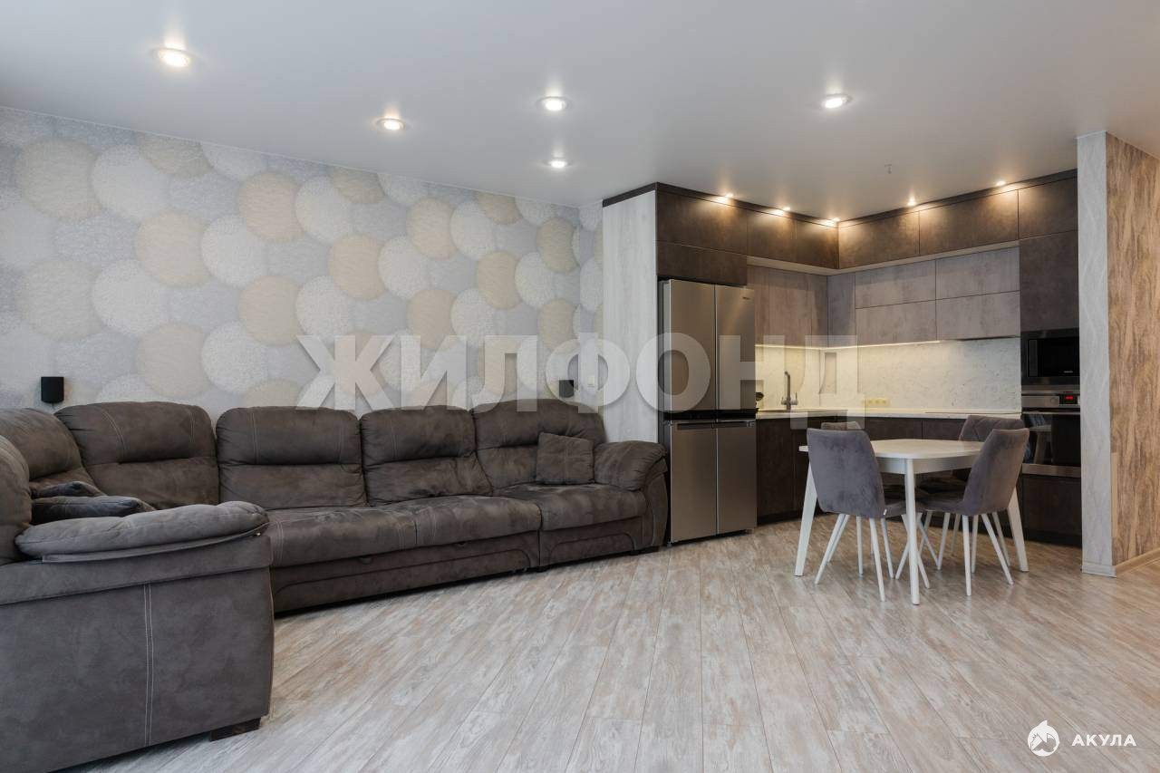 В квартире выполнен качественный ремонт современными материалами. Выделена большая кухня-гостиная с панорамным остекленением и кухонным гарнитуром со встроенной бытовой техникой. Теплый пол.