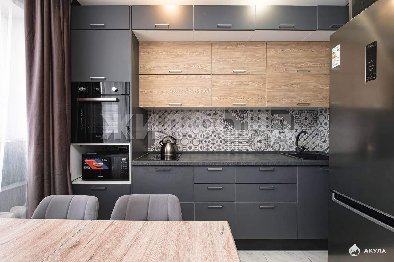 Кухня площадью 8, 7 кв.м. оборудована вместительным гарнитуром и встроенной бытовой техникой (варочная панель, духовой шкаф) , всё остаётся новым собственникам.
