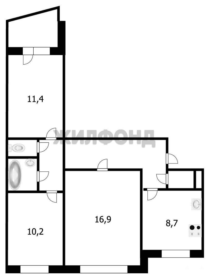 Три отдельных комнаты и кухня 9 м2, санузел раздельный. большая лоджия!