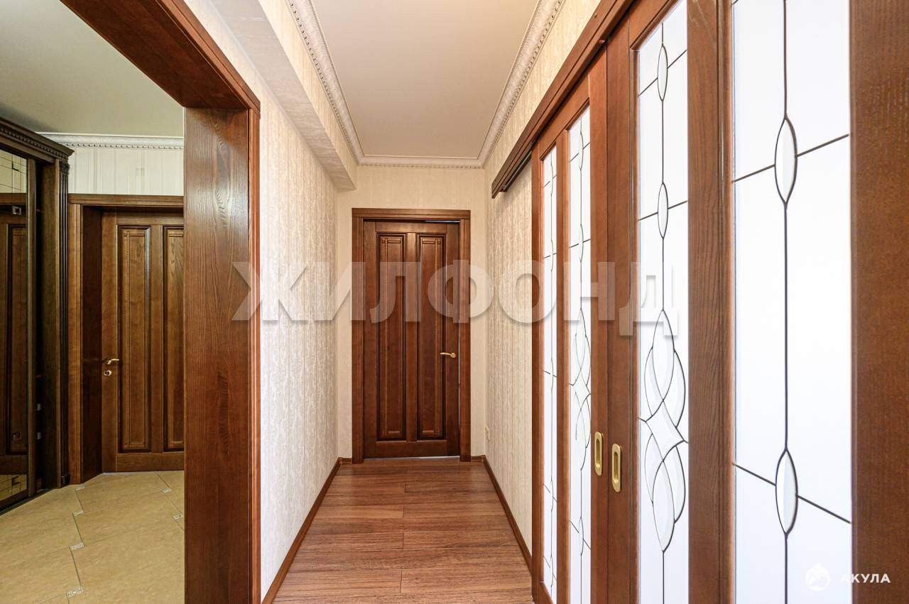 Полы керамогранит, ламинат , установлена система теплый пол. Двери - массив дерева с витражным остеклением.