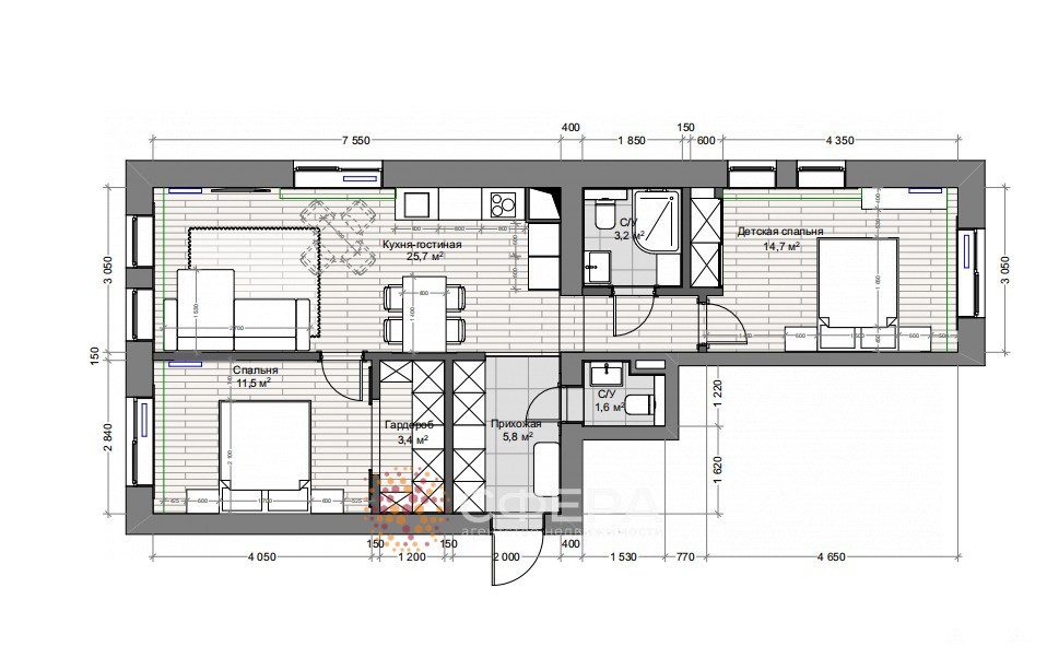 - 25.7 м²