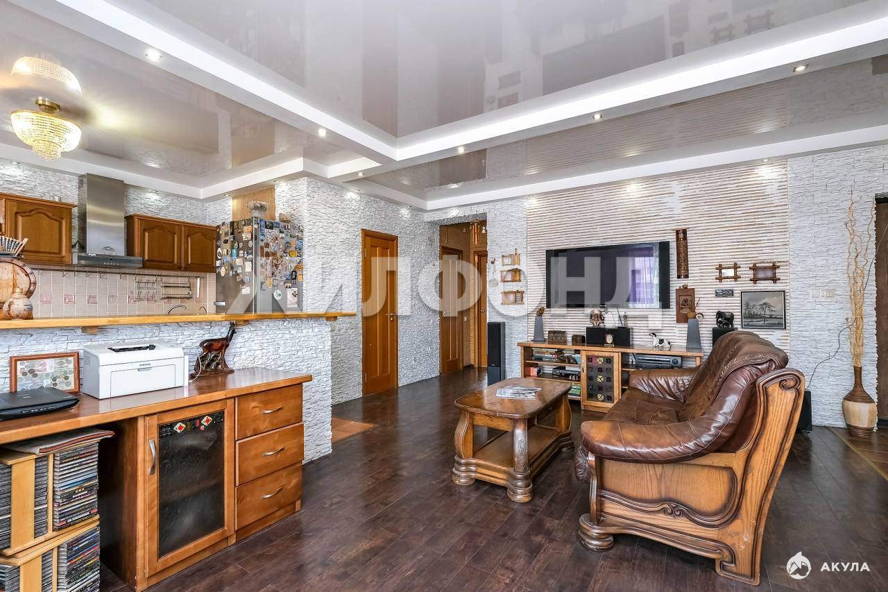 Интерьер квартиры выполнен в классическом стиле и в сочетании с высокими потолками (2, 75 метра) увеличивает и так довольно обширное пространство. Панорамные окна, сквозь которые проникает мягкий солнечный свет, создают атмосферу уюта и комфорта. Вся мебель и бытовая техника остаются в квартире: встроенные холодильник и морозильная камера, варочная панель, духовой шкаф. Инженерные системы, отделка санузлов, ремонт квартиры выполнены с применением современных материалов и поддерживаются в безупречном состоянии. Двор дома закрыт от посторонних лиц, обеспечивая безопасность жильцов. Во дворе расположены детская игровая и баскетбольная площадки.