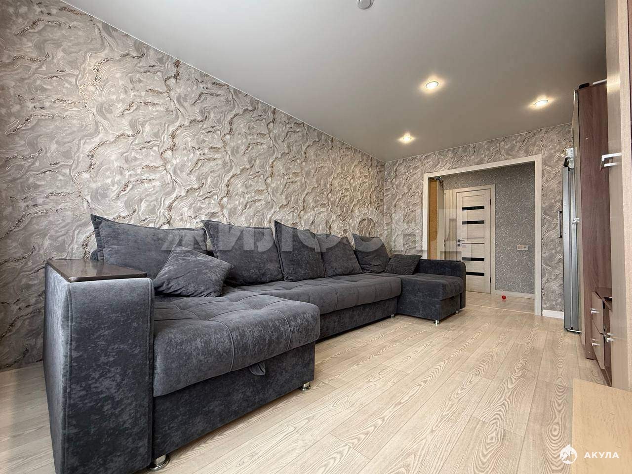 С отличным ремонтом: добротная входная дверь, пластиковые окна, натяжные потолки, современный кафель в с. узлах, новая сантехника, балкон застеклен.
