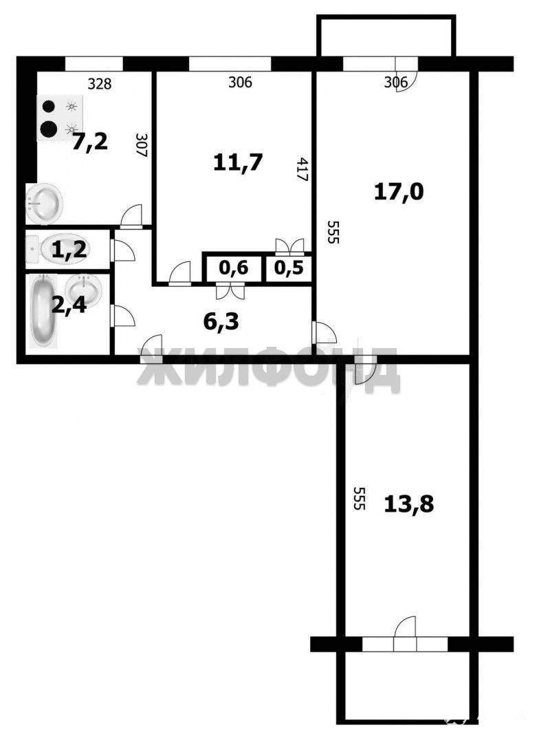 3 комн. квартира по ул. Зорге. Общей площадью: 63.10 кв.м.