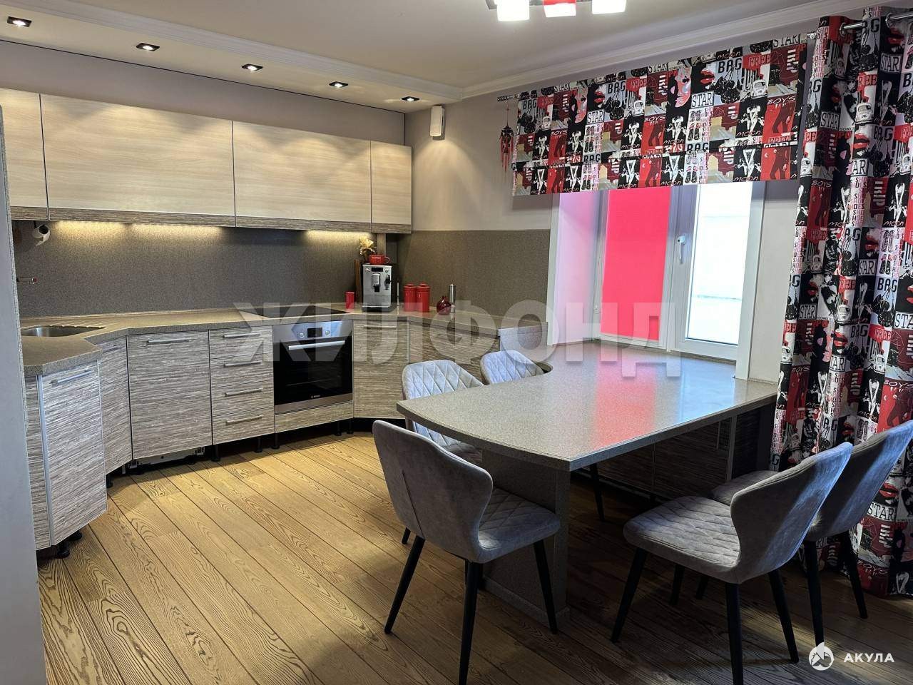 Остается вся мебель и техника: кухонный гарнитур, плита, вытяжка, микроволновая печь, холодильник, кровати, диван, кухонный стол и стулья, шкафы и многое другое (все, что вы видите на фото, кроме телевизоров и домашнего кинотеатра) .