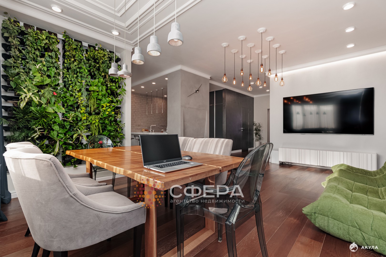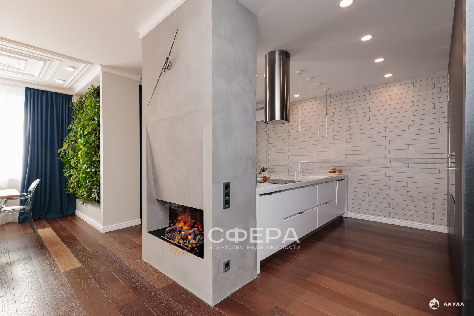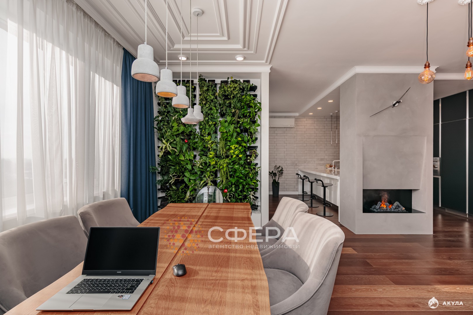 Роскошная кухня с техникой СМЭГ. Фитостена с живой зеленью и функцией автополива.