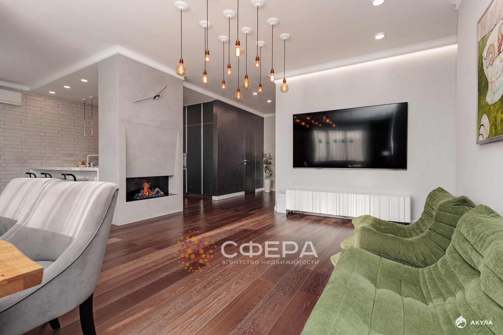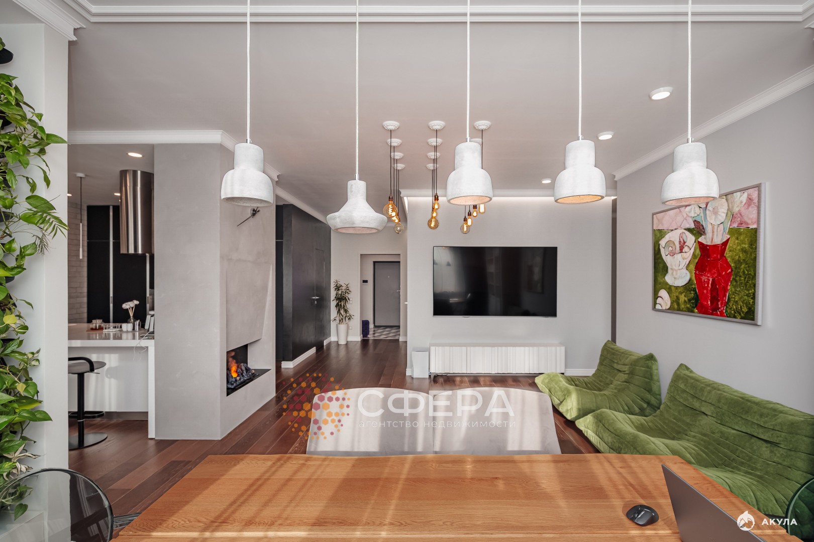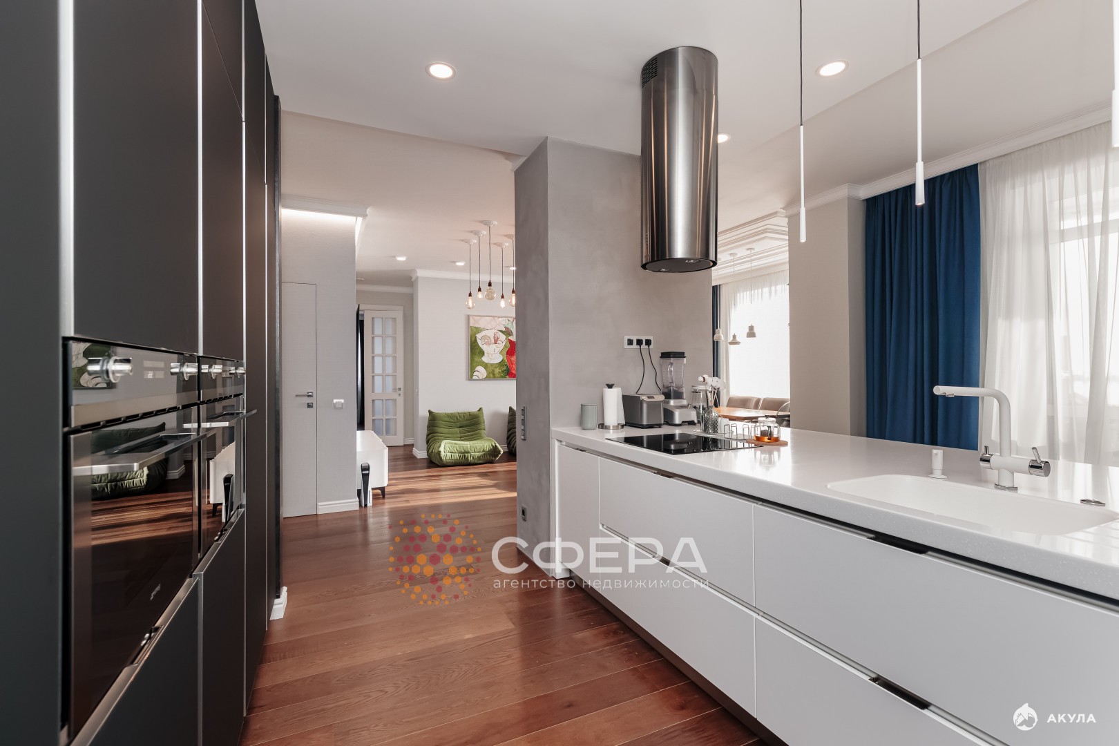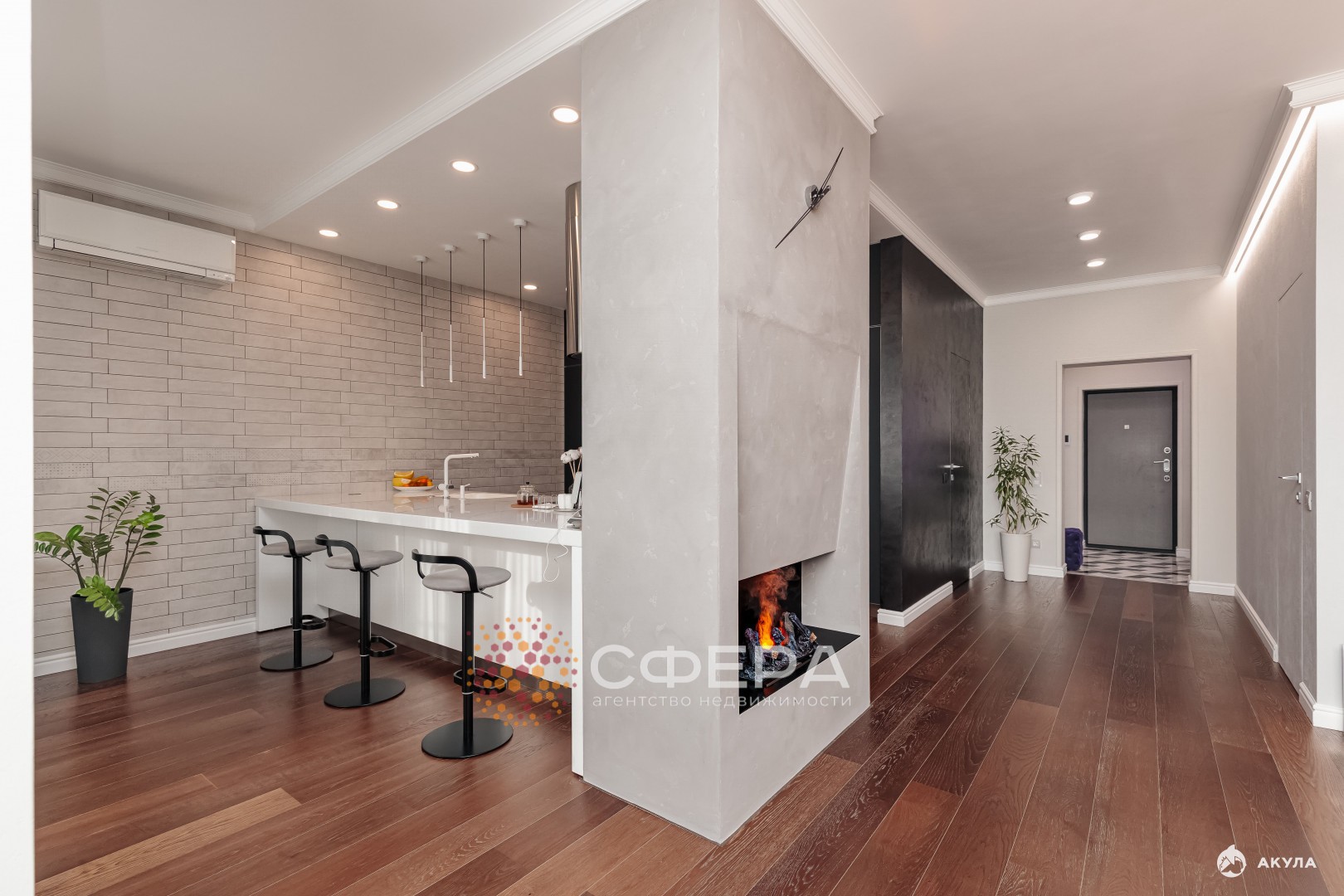 Площадь - 155 квадратов. Полы из натурального дерева, стены изысканная декоративная штукатурка