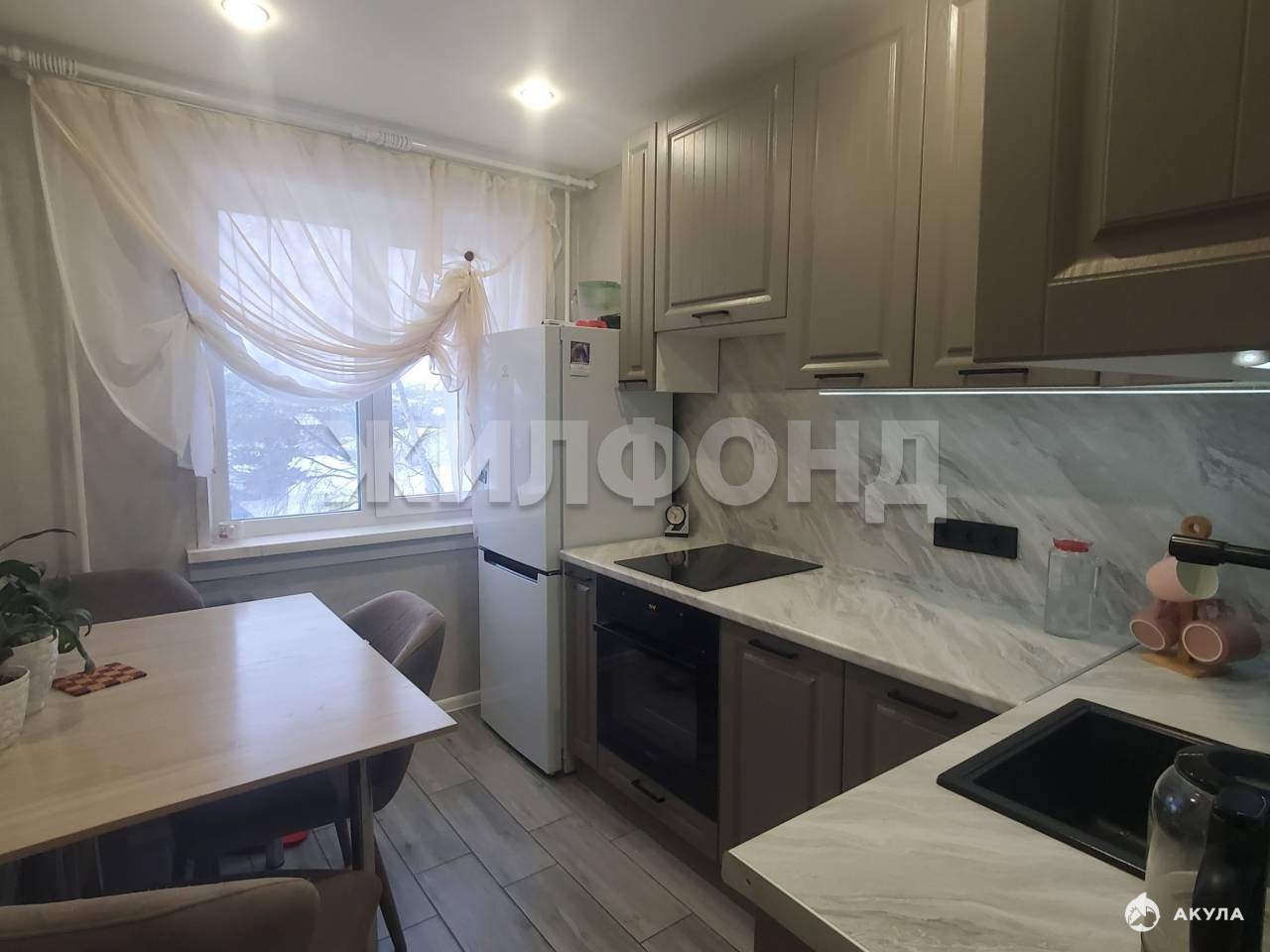 В подарок покупателям оставим удобный кухонный гарнитур.