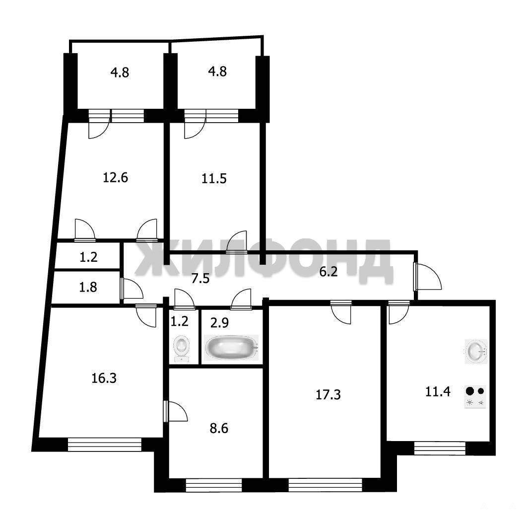 5 комн. квартира по ул. Краснообск пос. Общей площадью: 98.50 кв.м.