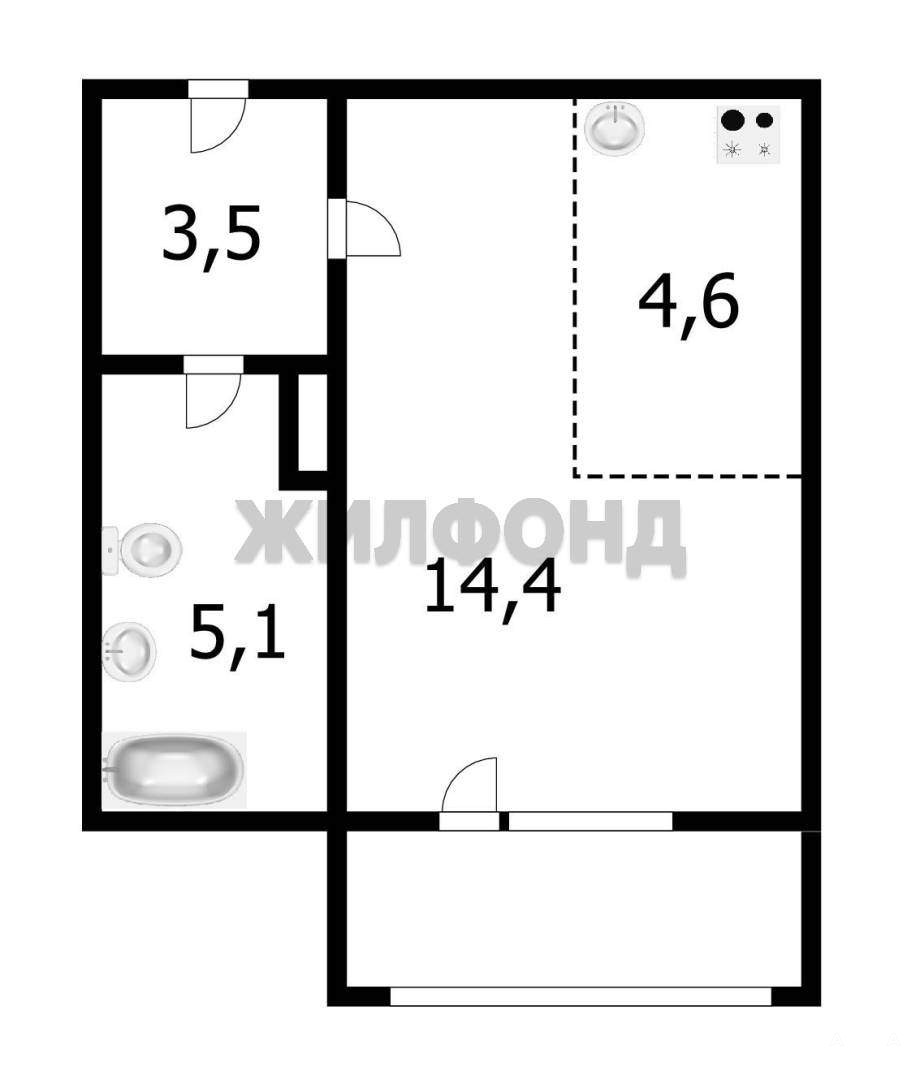 1 комн. квартира по ул. Петухова. Общей площадью: 27.00 кв.м.