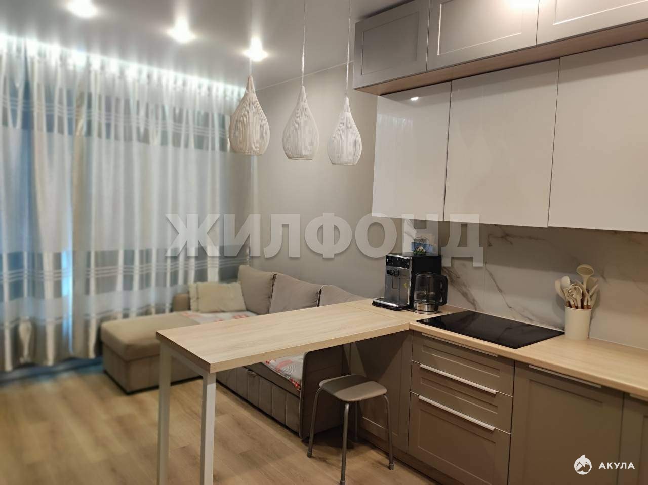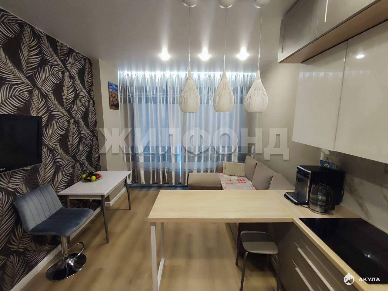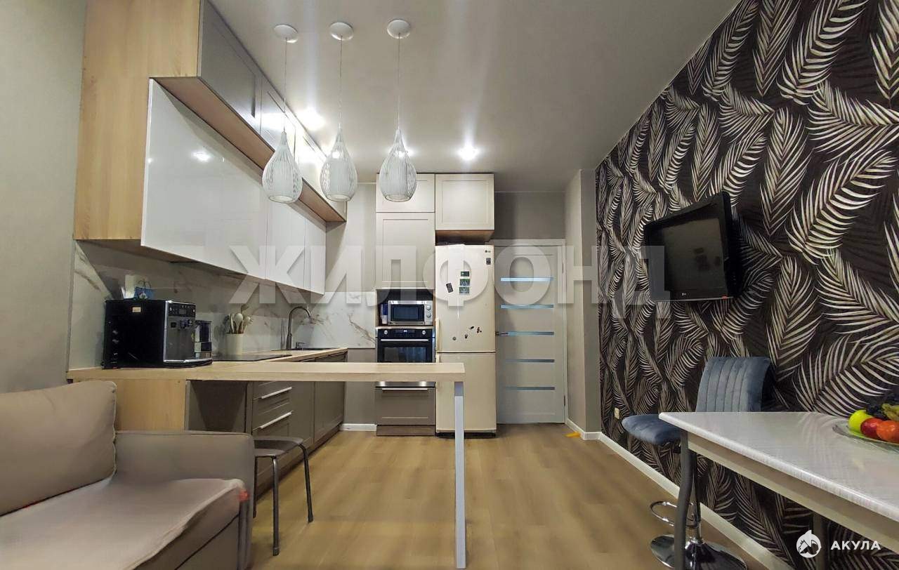 В КВАРТИРЕ выполнен ОТЛИЧНЫЙ ремонт: на полу -линолеум износостойкий, натяжные потолки с зонированным освещением и нишами под карнизы, стены выровнены, поклеены флизелиновые обои импортного производства. В санузле установлена душевая, все выложено кафелем, установлена качественная сантехника, тумба-раковина и зеркало с подсветкой. В кухне-гостиной установлен встроенный кухонный гарнитур до потолка, что обеспечивает удобное хранение бытовой техники , посуды и др. , установлено достаточное количество розеток для ТВ и кухонной техники (в том числе встроенные розетки в столешницу) . В спальне в зоне лоджии хорошо размещается кабинет и рабочая зона для школьника.