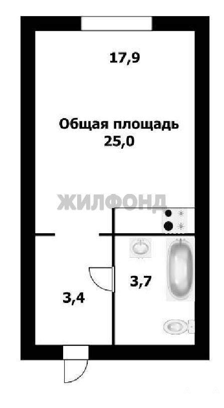 1 комн. квартира по ул. Железнодорожная. Общей площадью: 25.10 кв.м.