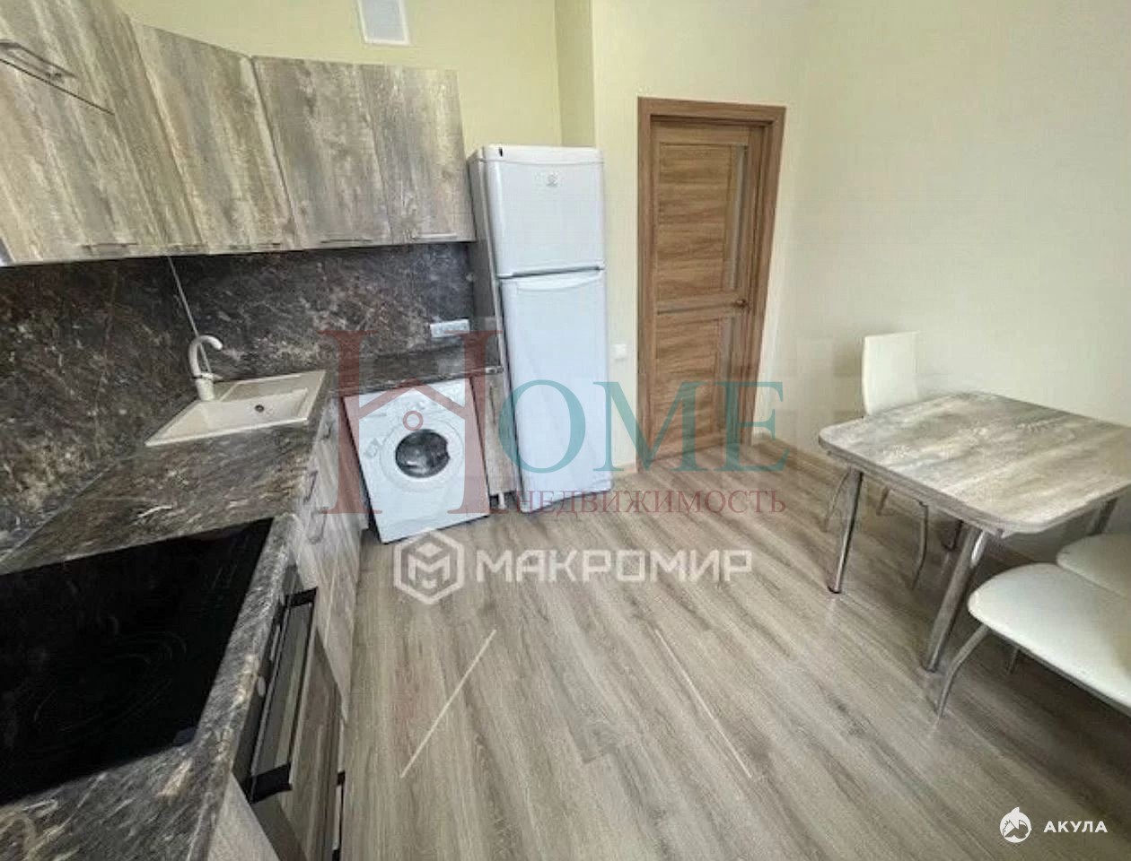 Квартира находится в тихом и зеленом спальном районе, который славится развитой инфраструктурой.
