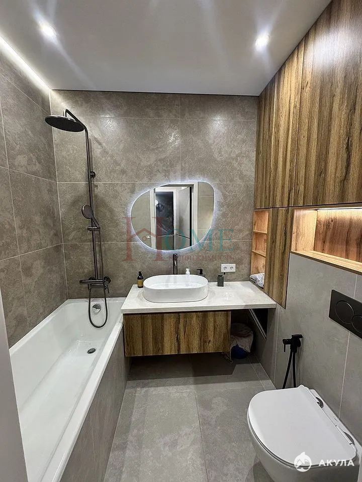 Ванная комната совмещенная, оформлена в современном стиле с качественной сантехникой.