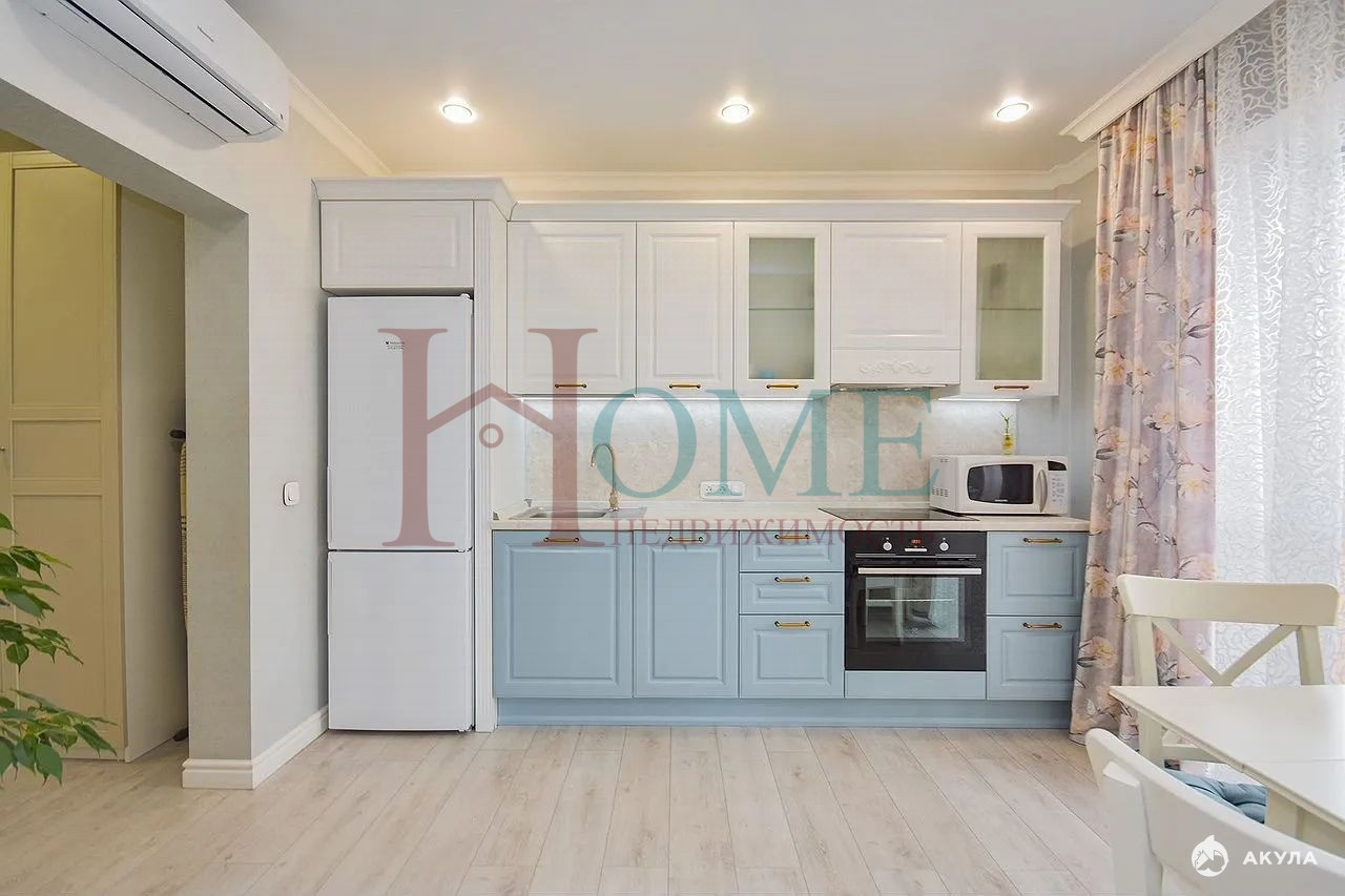 Квартира полностью укомплектована современной мебелью и бытовой техникой, включая встроенные варочную поверхность, духовой шкаф, микроволновую печь, кухонную вытяжку, кондиционер и водонагреватель для Вашего максимального комфорта.