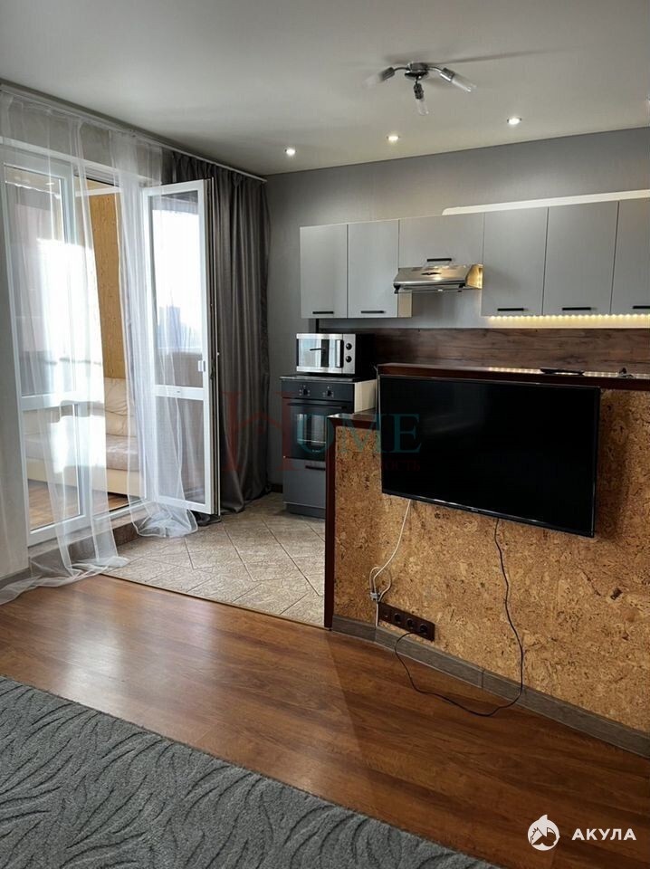 Сдается уютная, светлая квартира, укомплектована мебелью и бытовой техникой. Установлен кондиционер, водонагреватель, лоджия переделана в комнату.