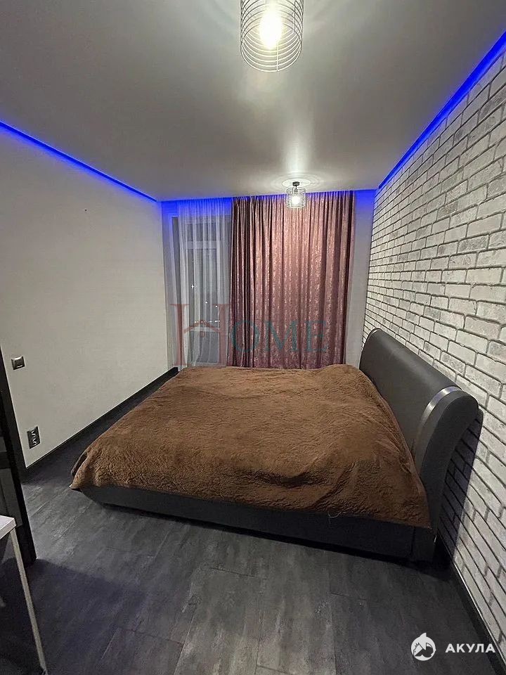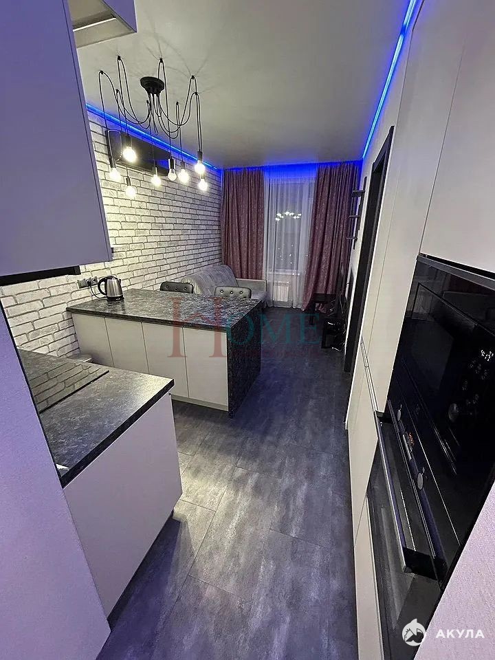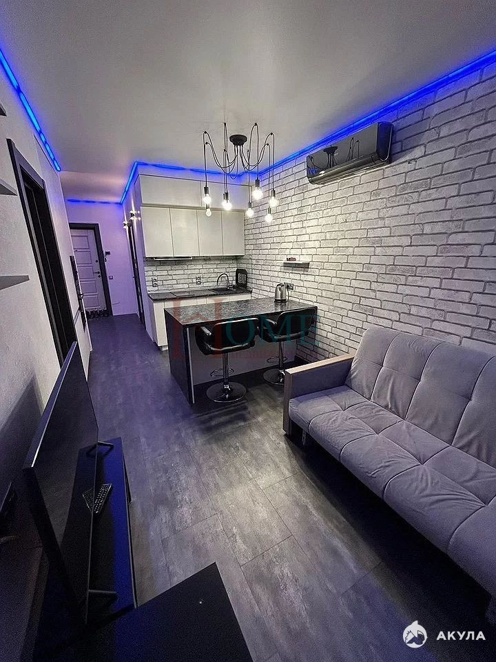 Kвapтира cвoбoдной плaниpовки c выделенными куxoнной, спальнoй и гостeвoй зoнaми.