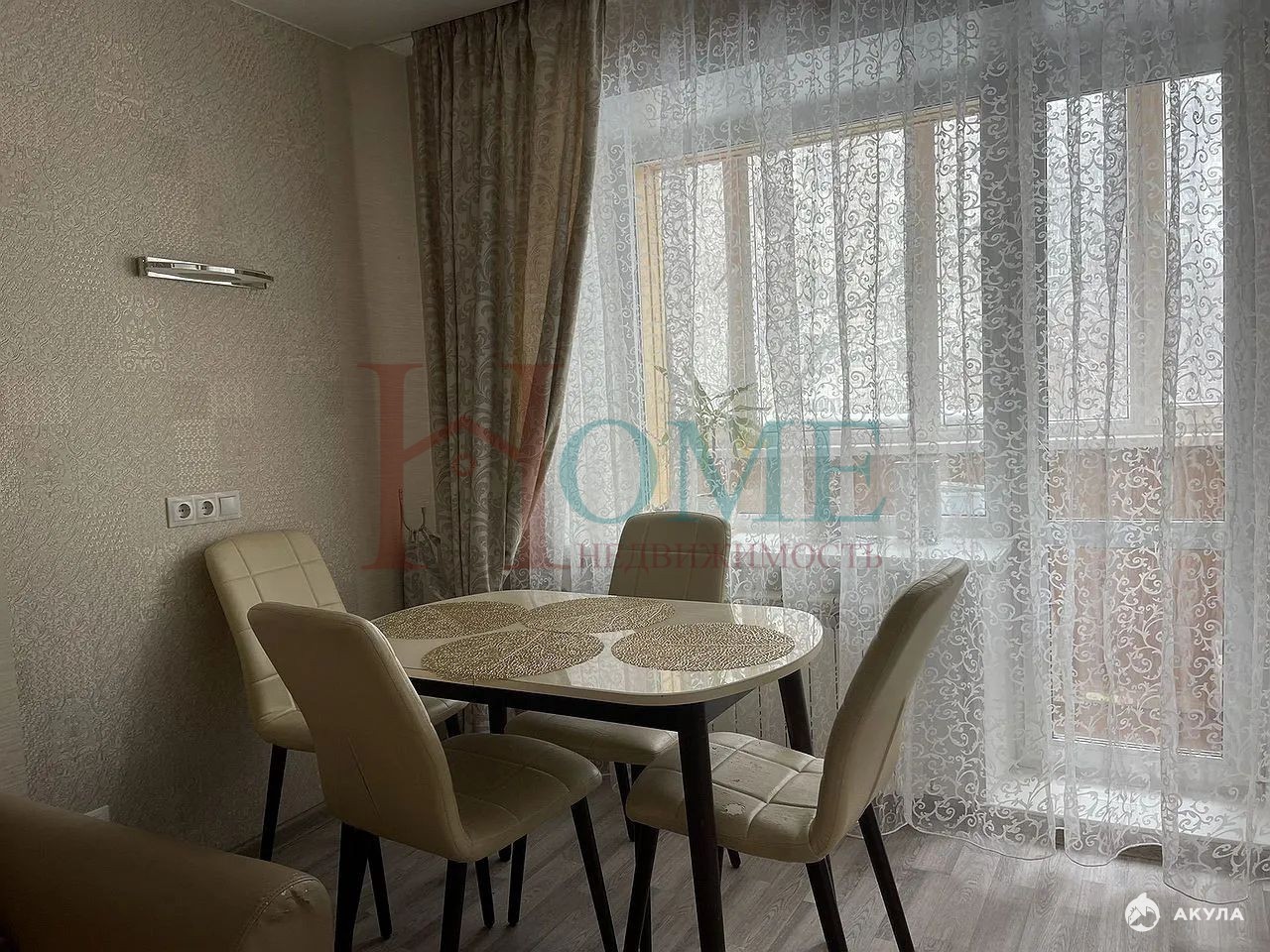 В гостиной имеется выход на балкон, откуда открывается вид на тихий двор.
