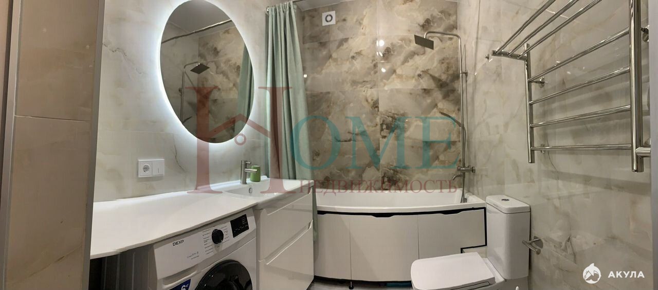 Сдаётся квартира со свежим ремонтом в ЖК Тихомиров. Укомплектована необходимой мебелью и бытовой техникой. Установлен кондиционер. Есть гардеробная.