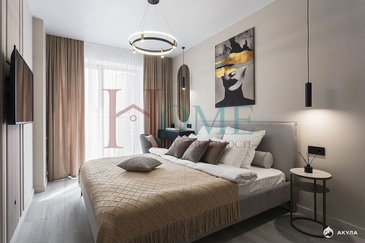 В квартире есть всё необходимое для комфортного проживания. Из техники в квартире установлено: кондиционер, холодильник, плита, микроволновка, стиральная машина, посудомоечная машина, телевизор.