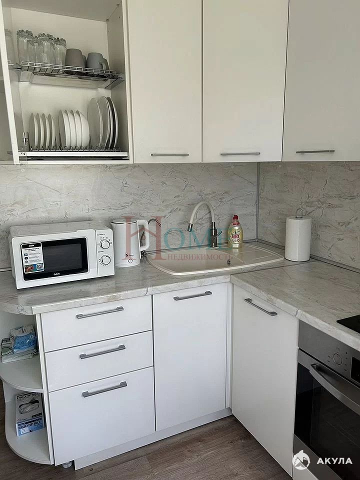 Квартира находится в тихом и зеленом спальном районе, который славится развитой инфраструктурой.