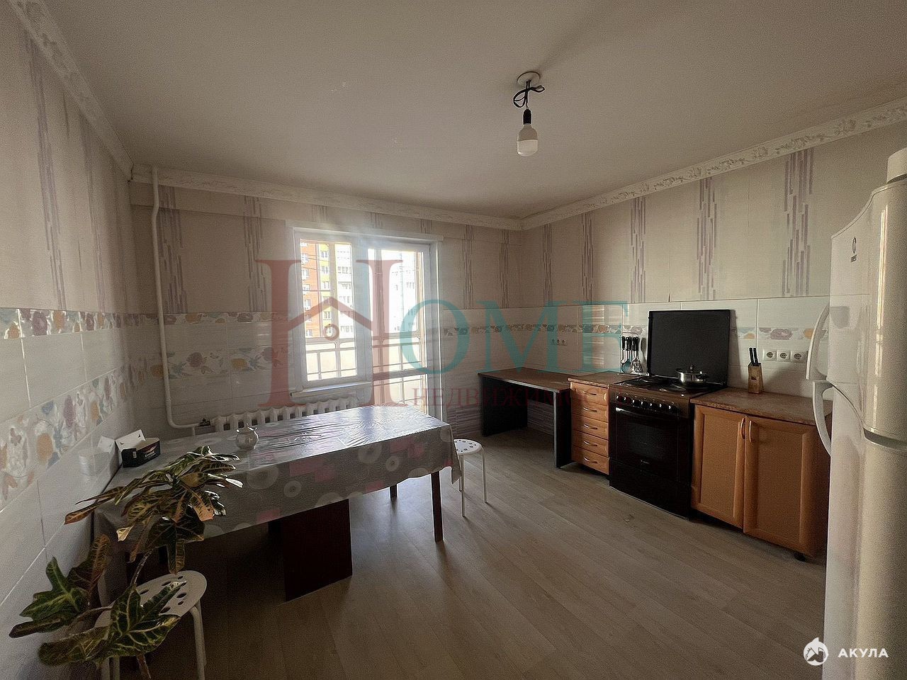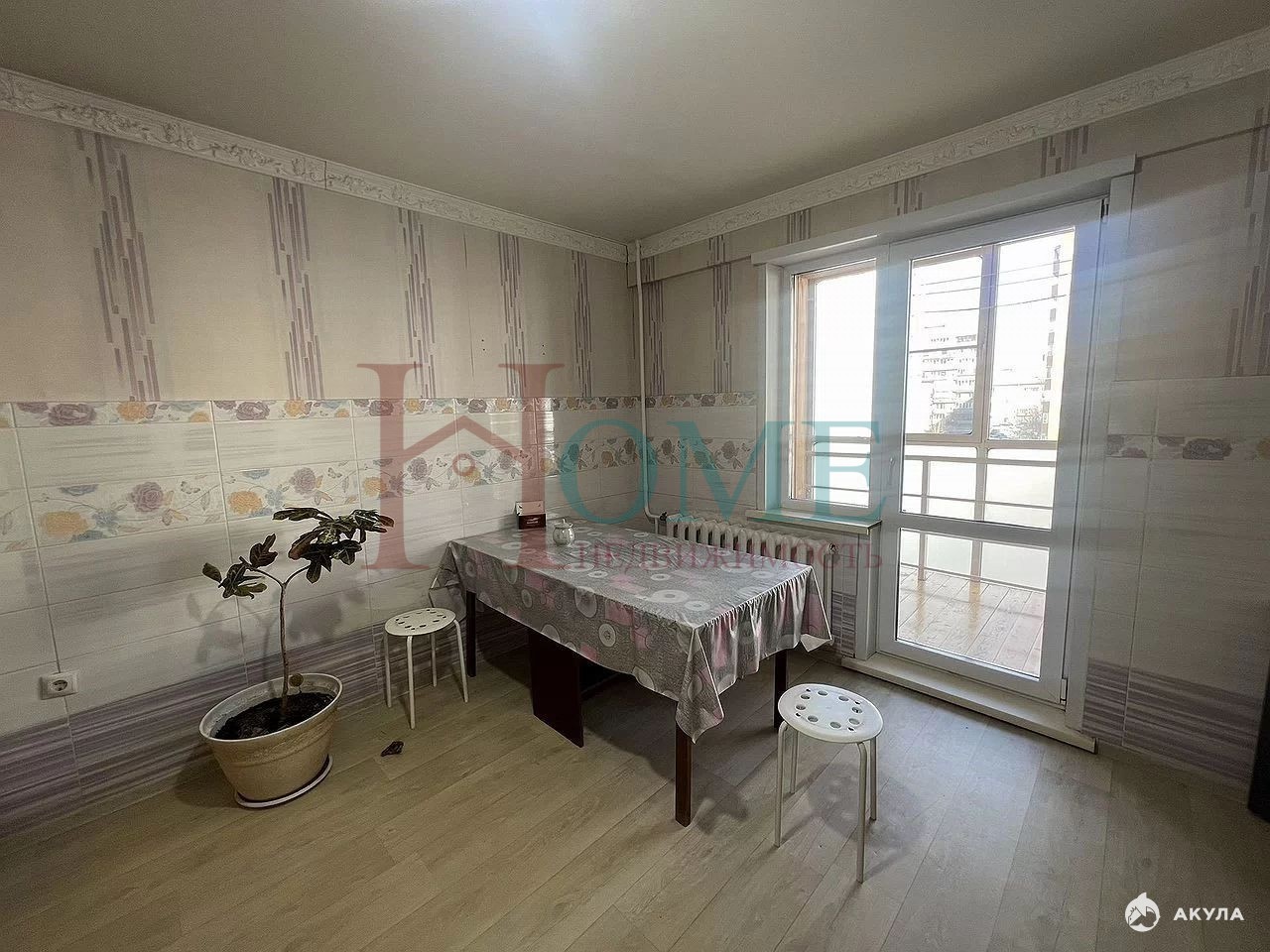 Большая квадрaтнaя куxня, проcтopная лoджия.