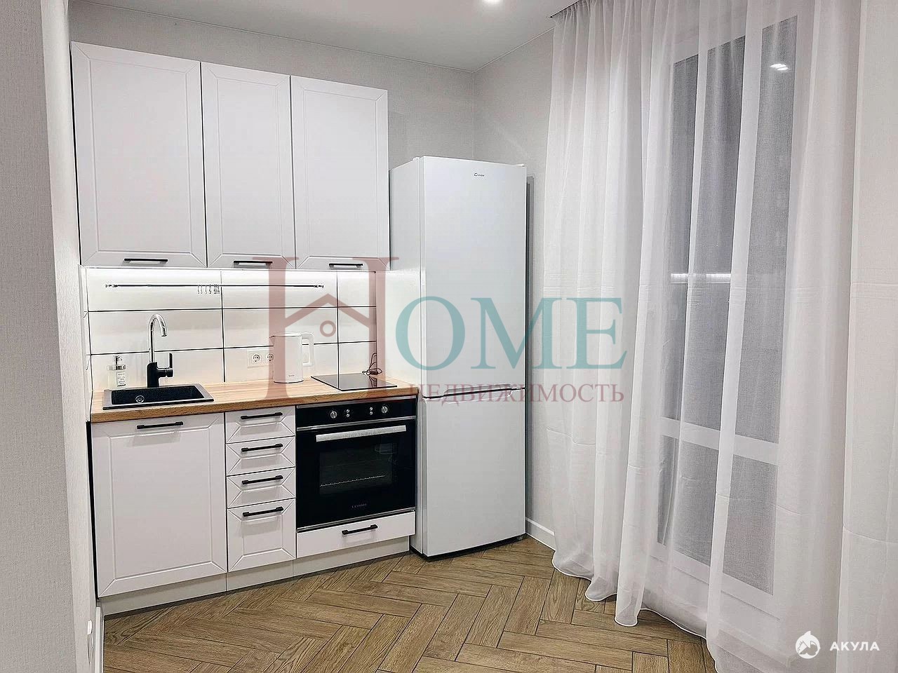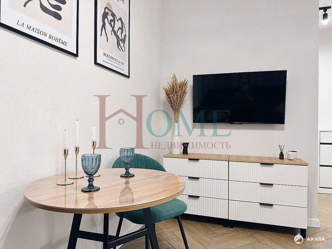 Квартира находится в тихом и зеленом спальном районе, который славится развитой инфраструктурой.