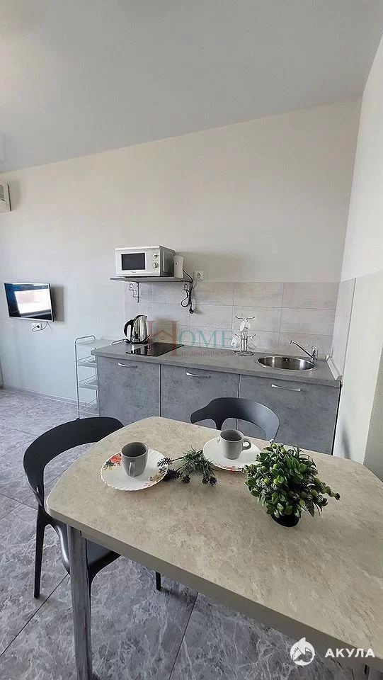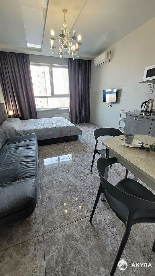 Квартира полностью меблирована: в ней есть удобная кухня, зоны для хранения одежды и спальные места, что делает её готовой для комфортного проживания. Вся необходимая техника, включая кондиционер, холодильник, плиту, микроволновую печь и стиральную машину, уже установлена, что обеспечит вам высокий уровень комфорта. Также в распоряжении — водонагреватель и телевизор для вашего удобства и досуга.